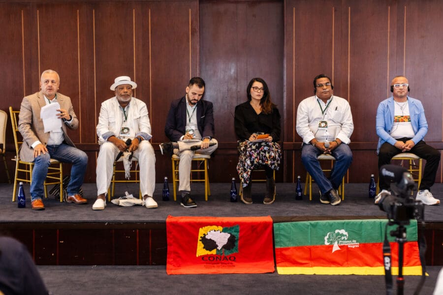 Por su parte, Denildo Rodriguez del CONAQ de Brasil, hizo referencia a la Amazonía negra invisibilizada: “En la Amazonía brasileña, 64 % de la población es negra (de acuerdo al censo nacional). Entonces, la amazonía brasileña es negra, y aun así no es reconocida. Por otro lado, las comunidades quilombolas están en todos los biomas del país y son claves para su preservación. No hay forma de hablar de conservación y de resiliencia de cambio climático sin que hablen con nosotros,porque nosotros somos el principio y medio»