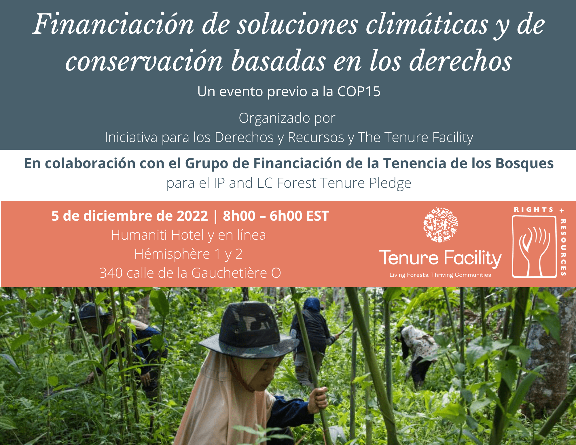 La Iniciativa para los Derechos y Recursos y el Tenure Facility, en colaboración con el Grupo de Financiación de la Tenencia Forestal, organizan conjuntamente una reunión híbrida para debatir la situación y las nuevas oportunidades de financiación de soluciones climáticas y de conservación basadas en los derechos. Esta reunión pretende avanzar en los objetivos del Path to Scale (P2S) y en la histórica promesa de tenencia forestal comprometida en la CoP26 de apoyar los esfuerzos para asegurar, fortalecer y defender los derechos de los Pueblos Indígenas y las comunidades locales a sus tierras y bosques.