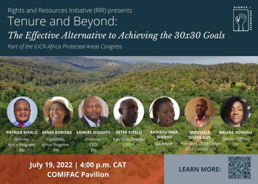 Organized by RRI, this panel presented the main findings of the coalition’s 30×30 analysis and drew from diverse country and stakeholder experiences to demonstrate effective community conservation actions. We looked at why strong governance and tenure rights are essential for achieving global conservation goals and creating lasting sustainable societies. In particular, this event contributed to the discourse on 1) land tenure and legal reforms; 2) the importance of creating enabling conditions beyond tenure; 3) the role of Indigenous and local community women in conservation; and 4) the key challenges they face in conservation. Read the speaker bios here.