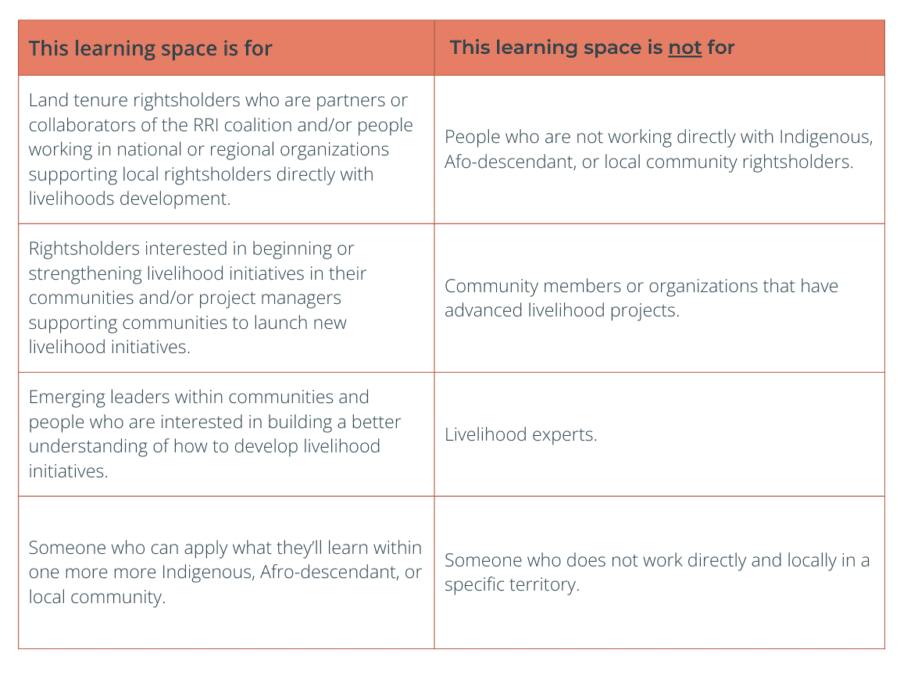 The Livelihoods Learning Community will be a free, 5-week virtual and facilitated learning space for members of the RRI coalition who meet the participant profile.