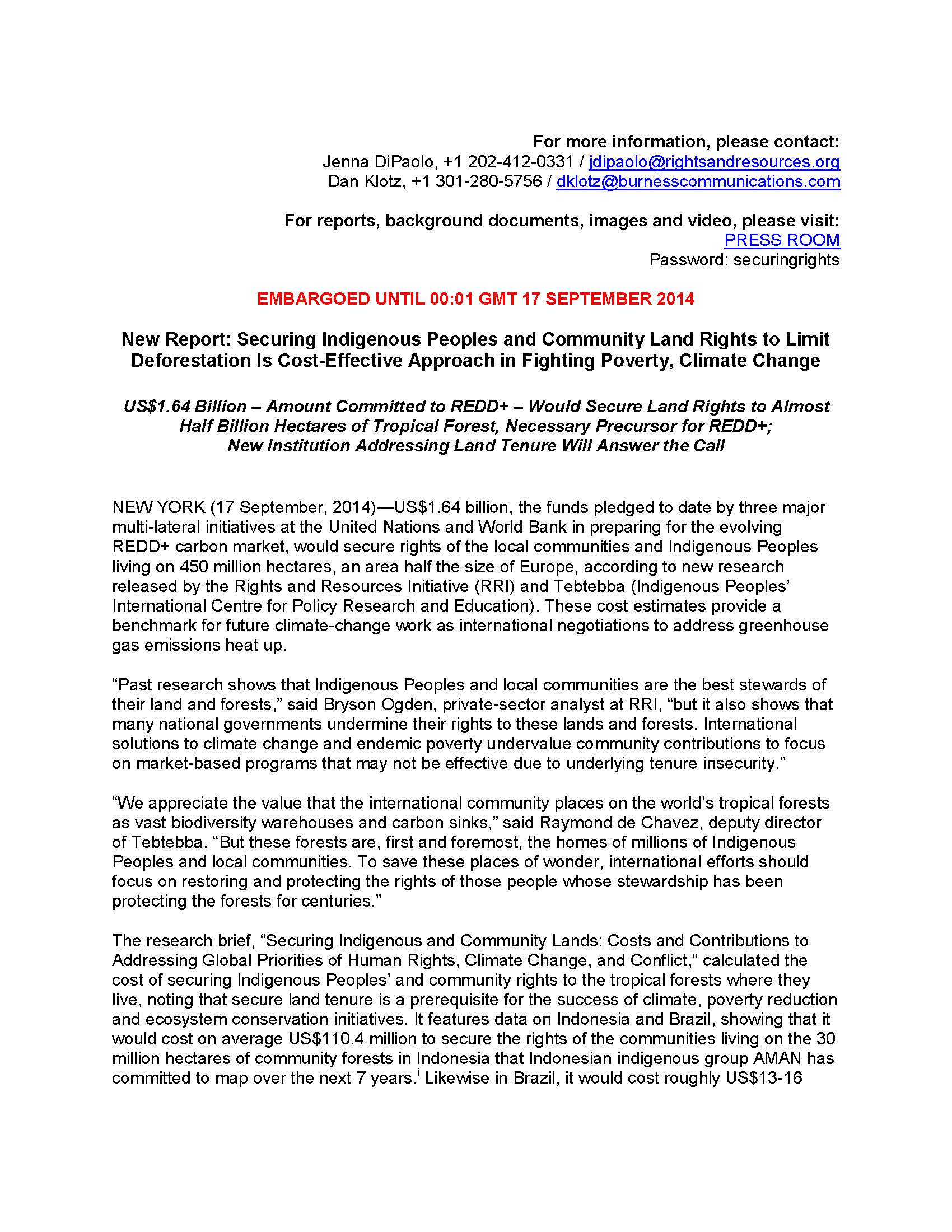 NEW YORK (17 September, 2014)—US$1.64 billion, the funds pledged to date by three major multi-lateral initiatives at the United Nations and World Bank in preparing…